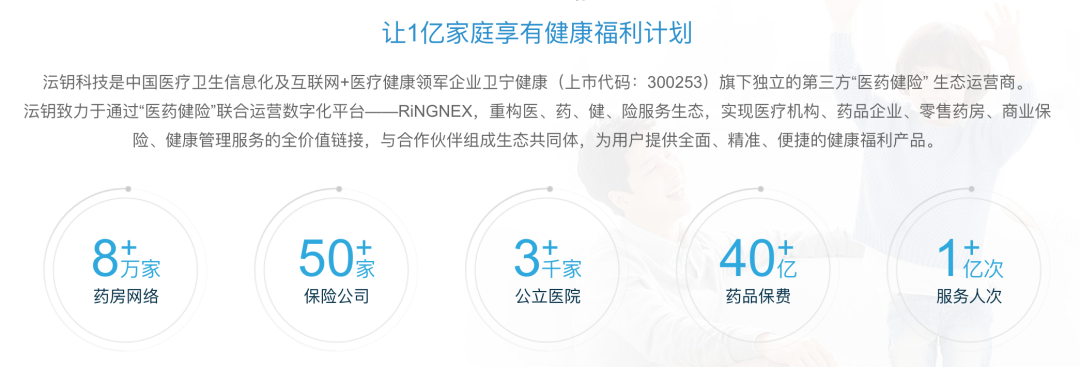 目前已与人保、太保、泰康、众安等50余家商保机构开展合作,覆盖全国30个省市,并在全国范围内连接了8万多家合作药房,依托卫宁健康集团,合作单体医院、区域卫健委、医联体、医共体等医疗机构。通过“RiNGNEX生态平台”,沄钥科技结合线上线下的医疗服务、药品PBM服务、健康管理服务、保险理赔服务、专科专病大数据精细运营、用户深度运营服务,为生态伙伴赋能的同时,整合健康行业多方资源,携手医、药、险为亿万家庭提供全方位的健康福利服务。